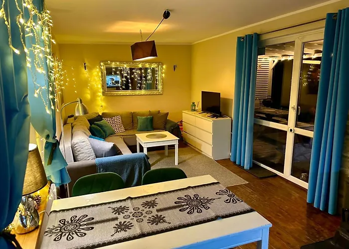 Beliggende 15 minutters køretur til Wiezyca, har Romantyczny Domek Marzen Z Balia Pod Gwiazdami Golubie,Kaszuby, udsigt over haven. Boligen indeholder også en terrasse.
